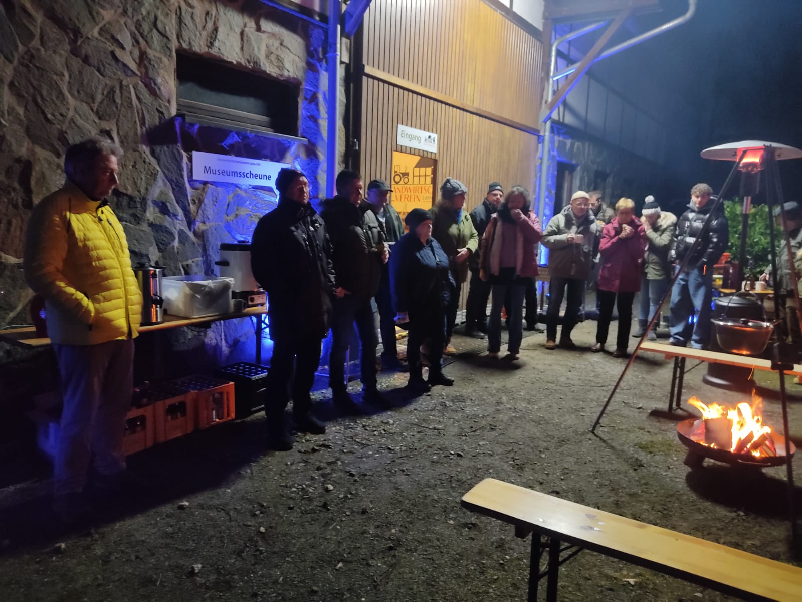 Knapp 50 Vereinsmitglieder und Freunde trafen sich zum Glühweintreffen. Bei mehreren Sorten des süffigen Getränks kamen schnell spannende Gespräche auf. Trotz der Winterkälte bevorzugten einige Teilnehmer den blonden Ochsen, unser eigenes Bier. Vereinsvorsitzender Andreas Viertelhausen ließ in einer kompakten Rede das Jahr 2024 mit seinem Höhepunkt, dem Ochsenfest, Revue passieren und gab einen Ausblick auf die diesjährigen Vereinsaktivitäten, unter denen neben den etablierten Veranstaltungen der neue Tag des Bieres und der damit verbundene Bau eines Brau- und Backhauses hervorstechen. Dank Bratwurst im Brötchen musste auch kein Teilnehmer verhungern.